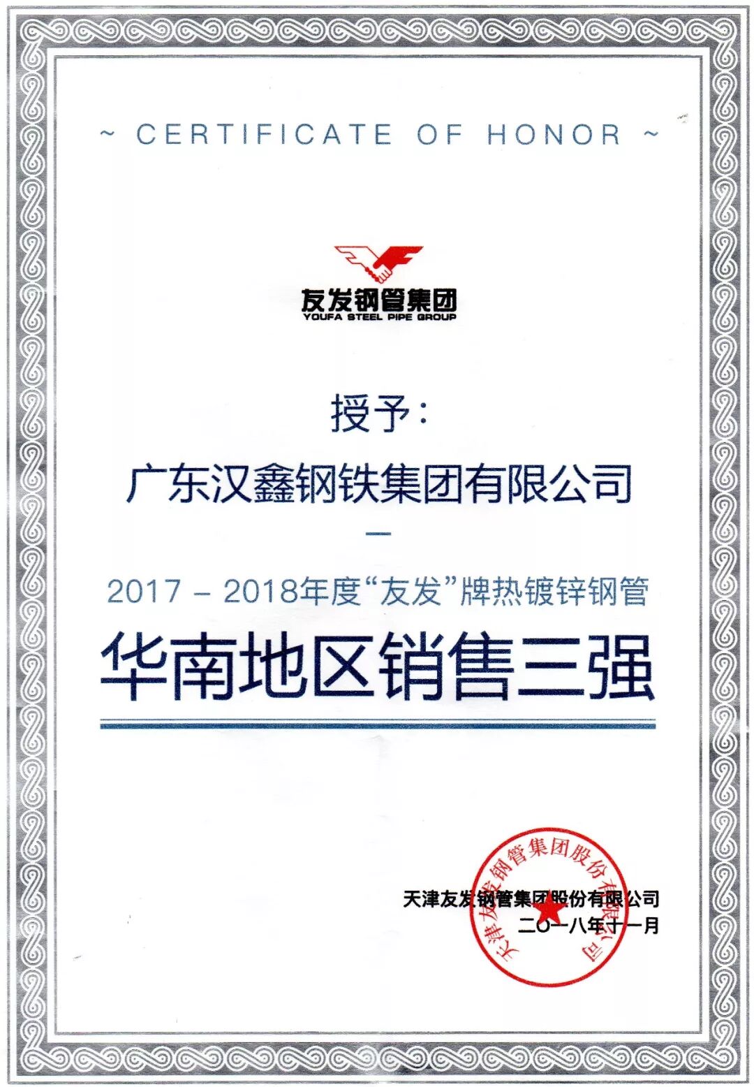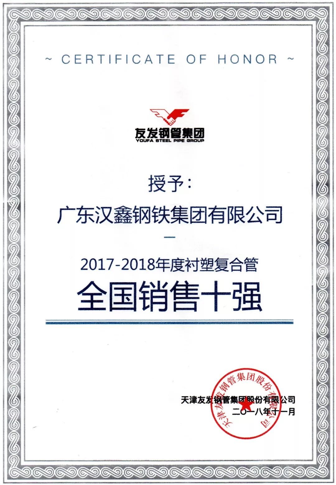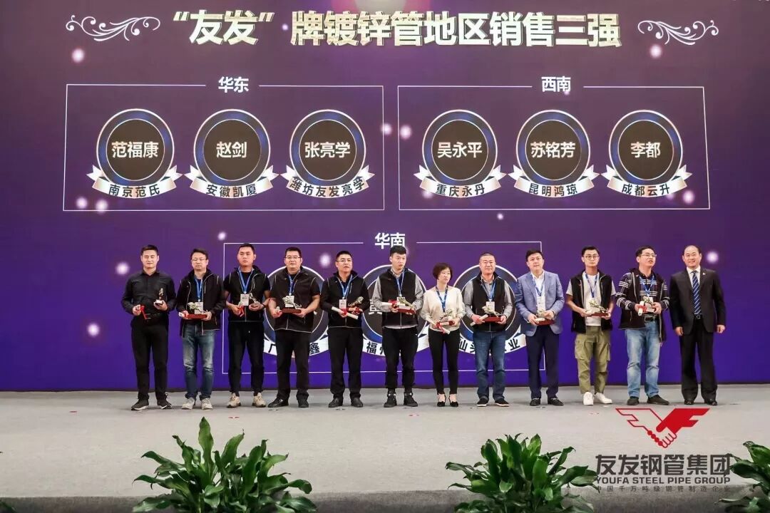 經(jīng)過(guò)近三十年的穩(wěn)健發(fā)展,漢鑫鋼鐵集團(tuán)凝聚了一群優(yōu)秀的管理人才和強(qiáng)大的營(yíng)銷團(tuán)隊(duì),在此次大會(huì)上,漢鑫再創(chuàng)佳績(jī),分別獲得了友發(fā)熱鍍鋅鋼管華南區(qū)銷售三強(qiáng)、涂塑復(fù)合管銷售六強(qiáng)、襯塑復(fù)合管銷售十強(qiáng)、鍍鋅圓管全國(guó)銷售二十強(qiáng)等多項(xiàng)銷售大獎(jiǎng)。